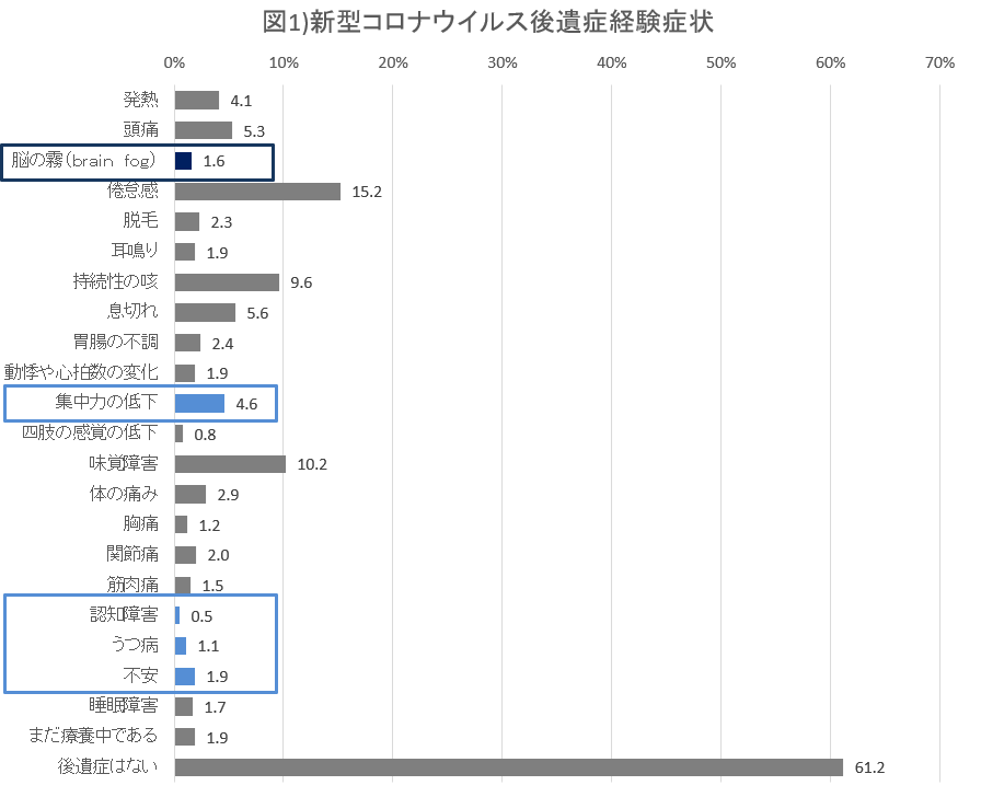 新型コロナウイルス感染症の後遺症におけるブレインフォグの割合