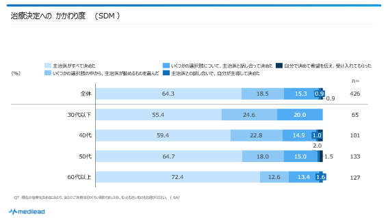 <図7>は治療決定への自身の関与について年代別でみたものです。