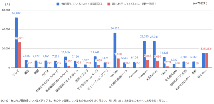 | ・ | 普段接している・利用しているメディアとしてはテレビが最も高く、次いでYouTube、Instagram、X(旧Twitter)が続く〈図2〉 |