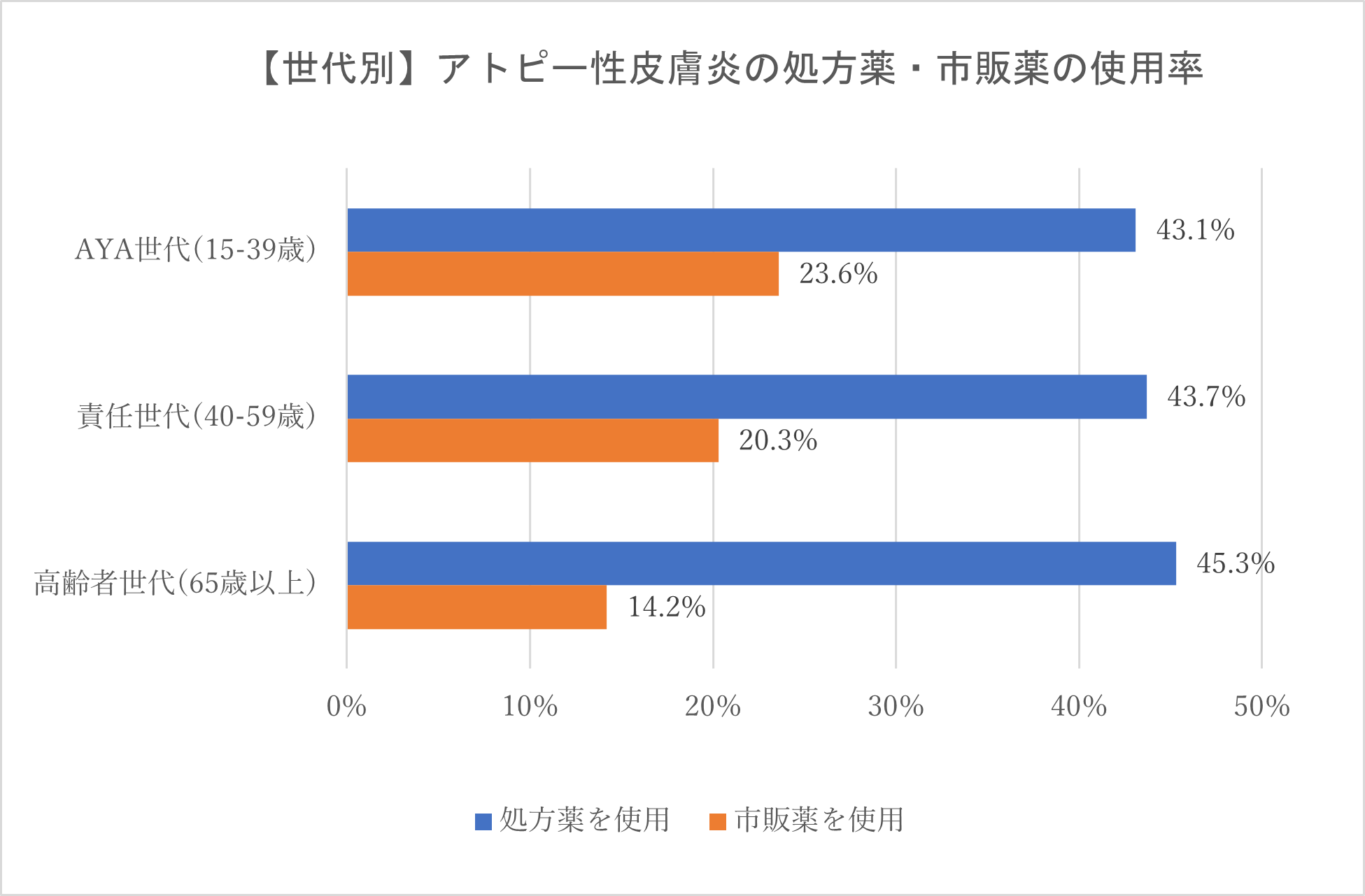 アトピー性皮膚炎を例に挙げると、<図2>の通り、AYA世代は他の世代と比べて市販薬を使用している割合が高いことがわかります。疾患によって異なるものの、AYA世代は責任世代や高齢者世代に比べて市販薬を使用している割合が高く、セルフメディケーションの傾向があると言えるでしょう。