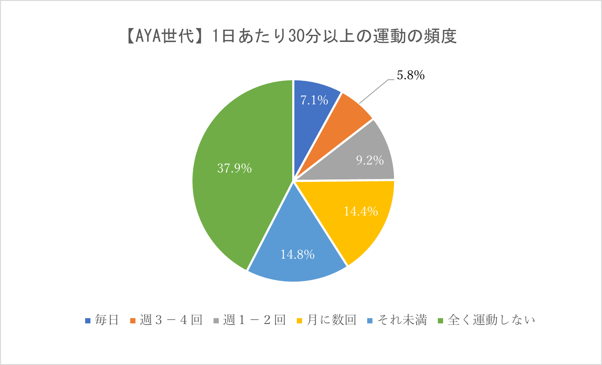 AYA世代の方に、直近1年間で1日30分以上の運動をどのくらいしていたかを聞いた結果が<図9>です。