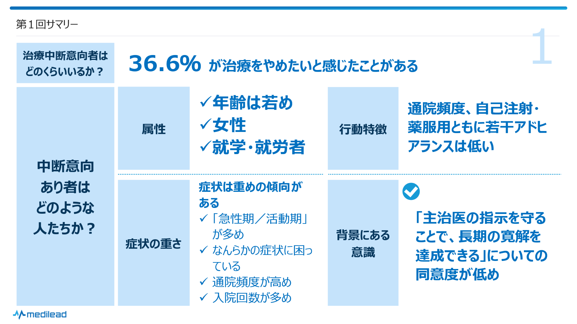 第一回は、「治療中断意向者はどのような人たちか」についてとりあげます。