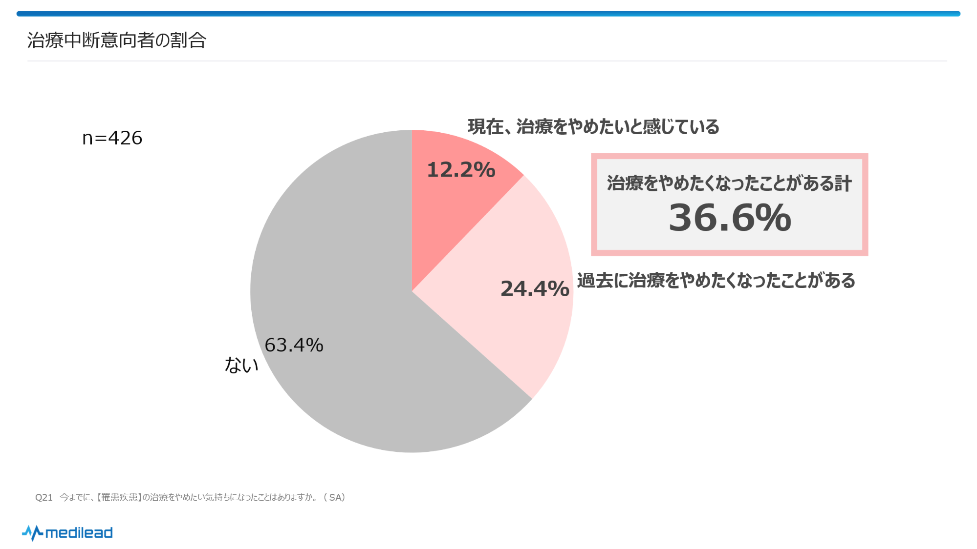 治療をやめたくなったことがある人とそうでない人の違いを見ることで、「どんな人が、なぜ治療をやめたいと思ってしまうのか」ということについて、引き続きみていきたいと思います。