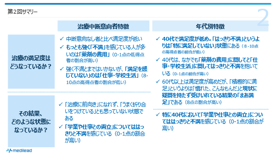 - 薬剤の費用にはっきり「不満」を感じている→中断意向に直接的に影響している
