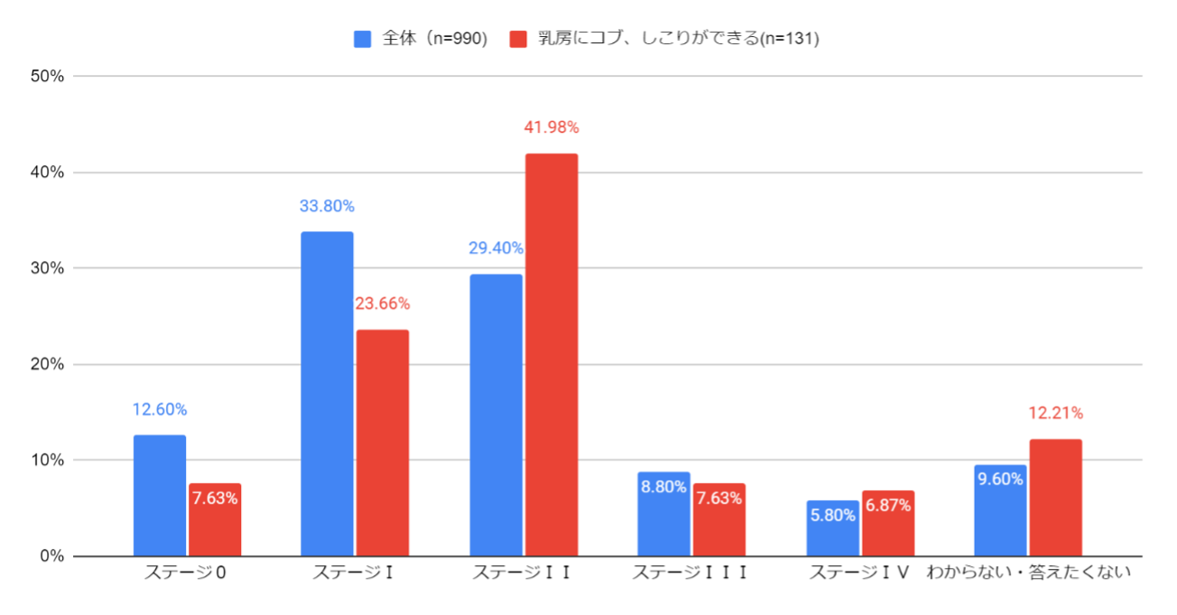 乳がん患者にステージを尋ねたところ、〈図4〉の結果となりました。