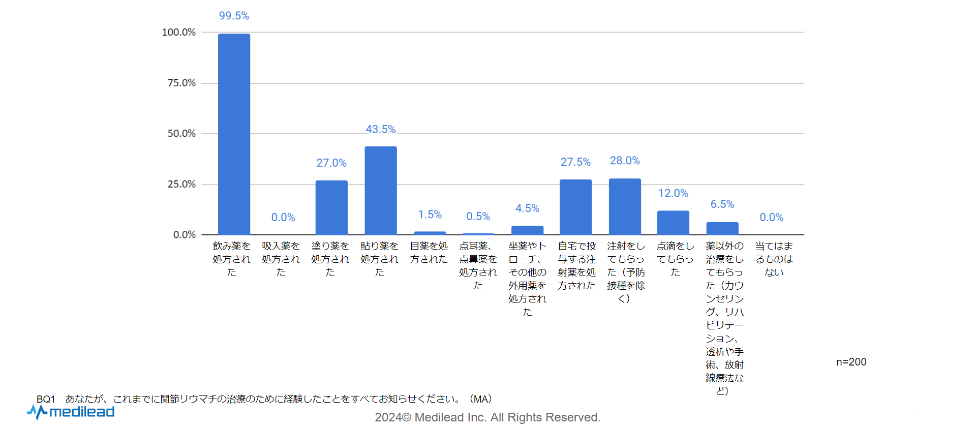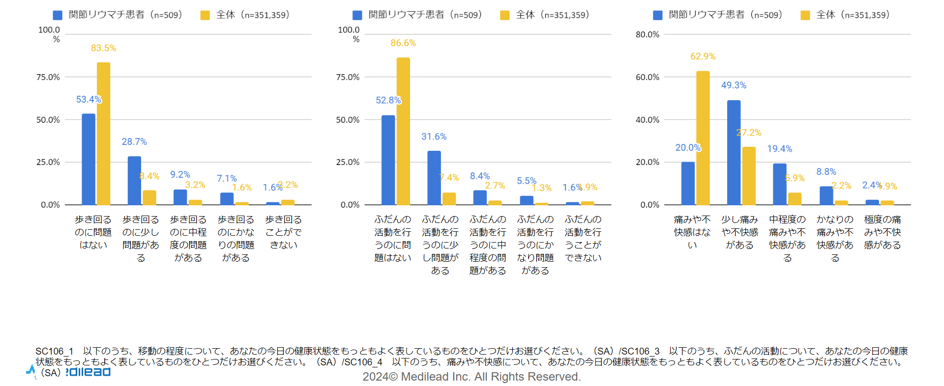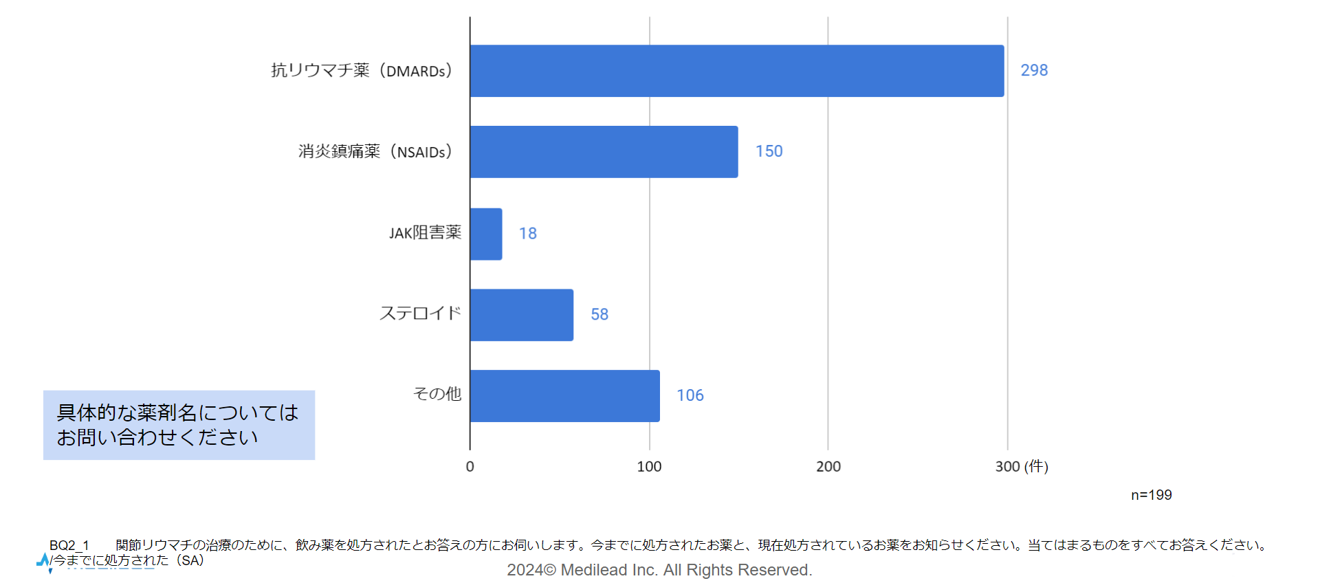 | 対象者条件: | 関節リウマチで1年以内に入院・通院したと回答した方(メディリードのデータベースより抽出) |