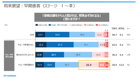 株式会社クロス・マーケティンググループ(本社:東京都新宿区、代表取締役社長兼CEO:五十嵐 幹、東証プライム3675)のグループ会社である株式会社メディリード(本社:東京都新宿区、代表取締役社長:亀井 晋、以下「当社」)は、がん患者さんの薬物治療継続についての現状、およびその背景となる意識や行動についての自主調査(2024年)を行い、632名からの回答を得ました。